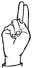 На ћирилици написано МИРЈАНА ВУЈАНАЦ састоји се из 14 слова [?]. Исписано ћириличном једноручном азбуком за глувонеме: